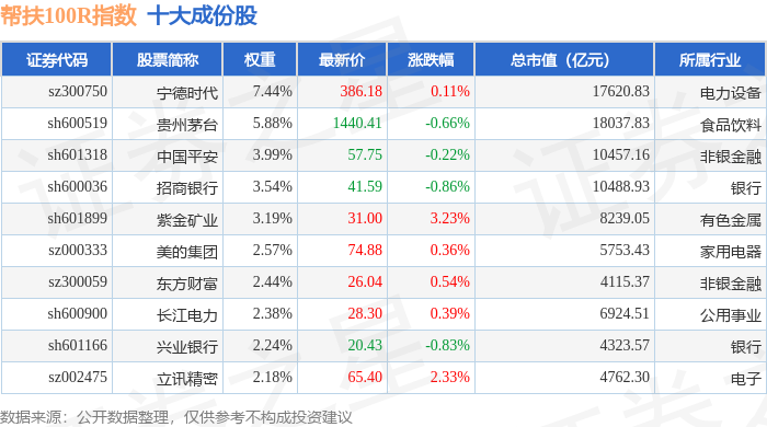 资金流向方面,帮扶100R(480065)指数成份股当日主力资金净流出合计44.21亿元,游资资金净流入合计10.65亿元,散户资金净流入合计33.56亿元。成份股资金流向详情见下表: