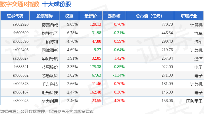 数字交通R(480075)指数十大成份股详情如下:
