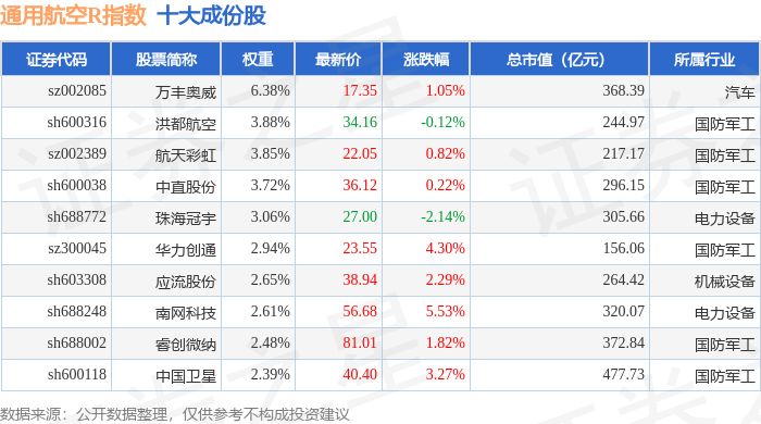 通用航空R(480076)指数十大成份股详情如下: