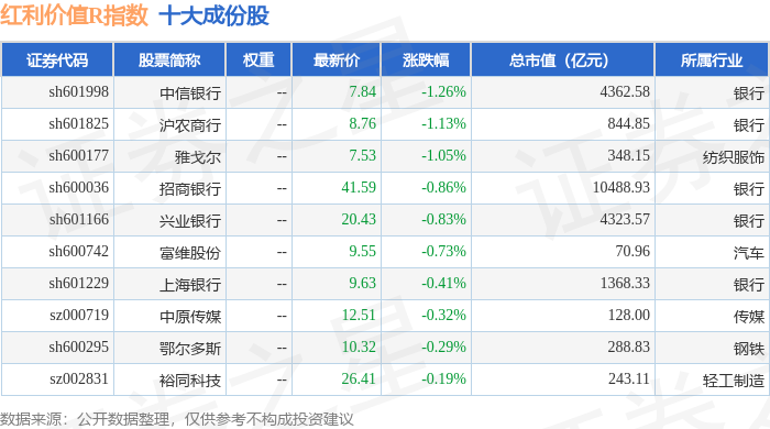 资金流向方面,红利价值R(489016)指数成份股当日主力资金净流出合计9.62亿元,游资资金净流入合计3.52亿元,散户资金净流入合计6.1亿元。成份股资金流向详情见下表: