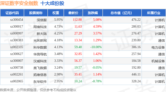 深证数字安全(970052)指数十大成份股详情如下: