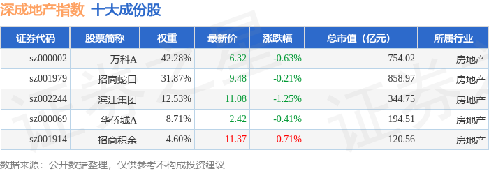 证券之星消息,10月27日,深成地产(971001)指数报收于486.39点,跌0.49%,成交15.31亿元,换手率0.8%。当日该指数成份股中,上涨的有1家,招商积余以0.71%的涨幅领涨,下跌的有4家,滨江集团以1.25%的跌幅领跌。