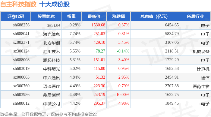 证券之星消息,10月27日,自主科技(980033)指数报收于9965.24点,涨1.91%,成交1279.96亿元,换手率2.38%。当日该指数成份股中,上涨的有42家,兆易创新以10.0%的涨幅领涨,下跌的有7家,恒玄科技以2.87%的跌幅领跌。