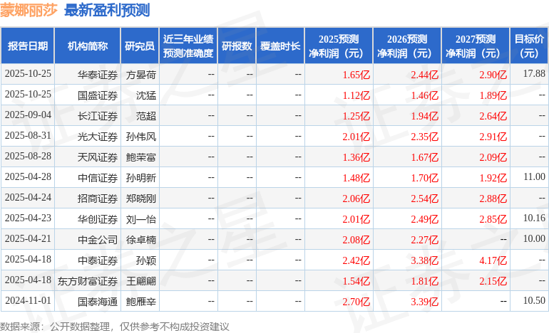 以下是详细的盈利预测信息: