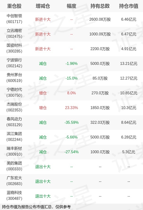证券之星消息,10月27日富国基金旗下朱少醒管理的富国天惠精选成长混合型基金(LOF)公布三季报,近1年净值增长率15.18%。与上一季度相比,该基金前十大重仓股新增中创智领,立讯精密,国瓷材料;其中宁波银行持仓占比5.47%,为该基金第一大重仓股;美的集团,广东宏大,蓝晓科技等退出前十大重仓股;详细数据如下: