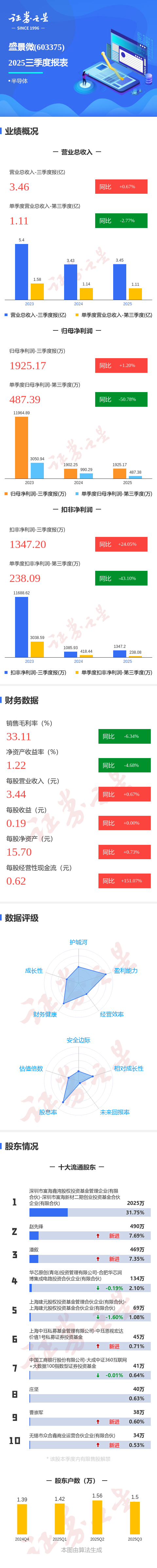证券之星消息,盛景微2025年三季报显示,公司主营收入3.46亿元,同比上升0.68%;归母净利润1925.17万元,同比上升1.2%;扣非净利润1347.2万元,同比上升24.06%;其中2025年第三季度,公司单季度主营收入1.11亿元,同比下降2.77%;单季度归母净利润487.39万元,同比下降50.78%;单季度扣非净利润238.09万元,同比下降43.1%;负债率11.13%,投资收益402.45万元,财务费用9.13万元,毛利率33.11%。