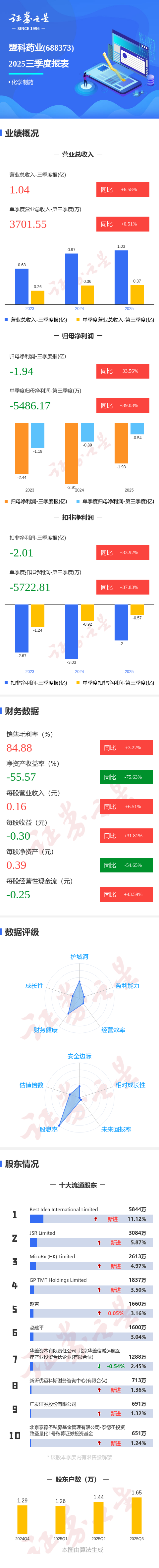 证券之星消息,盟科药业2025年三季报显示,公司主营收入1.04亿元,同比上升6.58%;归母净利润-1.94亿元,同比上升33.56%;扣非净利润-2.01亿元,同比上升33.93%;其中2025年第三季度,公司单季度主营收入3701.55万元,同比上升0.52%;单季度归母净利润-5486.17万元,同比上升39.04%;单季度扣非净利润-5722.81万元,同比上升37.84%;负债率64.57%,财务费用630.62万元,毛利率84.88%。