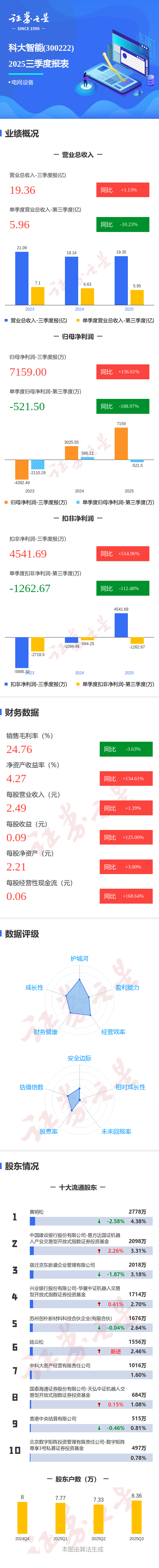 证券之星消息,科大智能2025年三季报显示,公司主营收入19.36亿元,同比上升1.13%;归母净利润7159.0万元,同比上升136.62%;扣非净利润4541.69万元,同比上升514.97%;其中2025年第三季度,公司单季度主营收入5.96亿元,同比下降10.24%;单季度归母净利润-521.5万元,同比下降188.97%;单季度扣非净利润-1262.67万元,同比下降112.48%;负债率61.22%,投资收益228.13万元,财务费用247.06万元,毛利率24.76%。