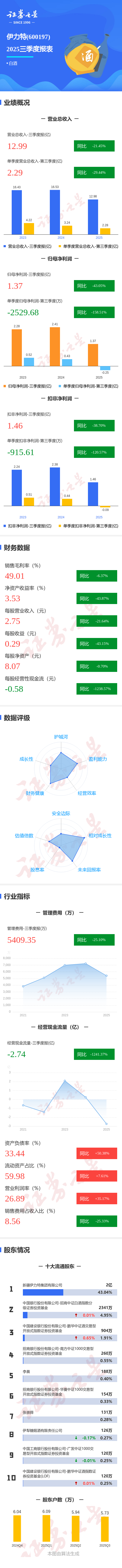 证券之星消息,伊力特2025年三季报显示,公司主营收入12.99亿元,同比下降21.46%;归母净利润1.37亿元,同比下降43.05%;扣非净利润1.46亿元,同比下降38.7%;其中2025年第三季度,公司单季度主营收入2.29亿元,同比下降29.44%;单季度归母净利润-2529.68万元,同比下降158.52%;单季度扣非净利润-915.61万元,同比下降120.58%;负债率33.44%,投资收益223.21万元,财务费用1534.2万元,毛利率49.01%。