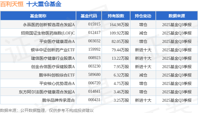 持有百利天恒最多的基金为永赢医药创新智选混合发起A,目前规模为11.87亿元,最新净值1.7642(10月27日),较上一交易日上涨1.26%,近一年上涨130.23%。该基金现任基金经理为单林。