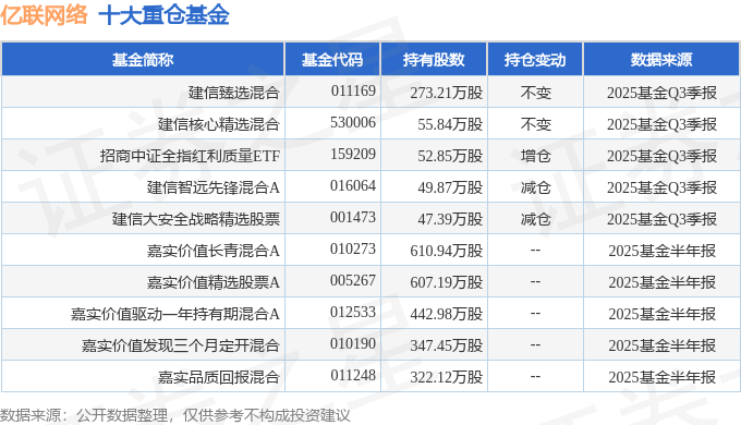 持有亿联网络最多的基金为建信臻选混合,目前规模为20.81亿元,最新净值0.8855(10月27日),较上一交易日上涨1.21%,近一年上涨1.5%。该基金现任基金经理为王东杰。