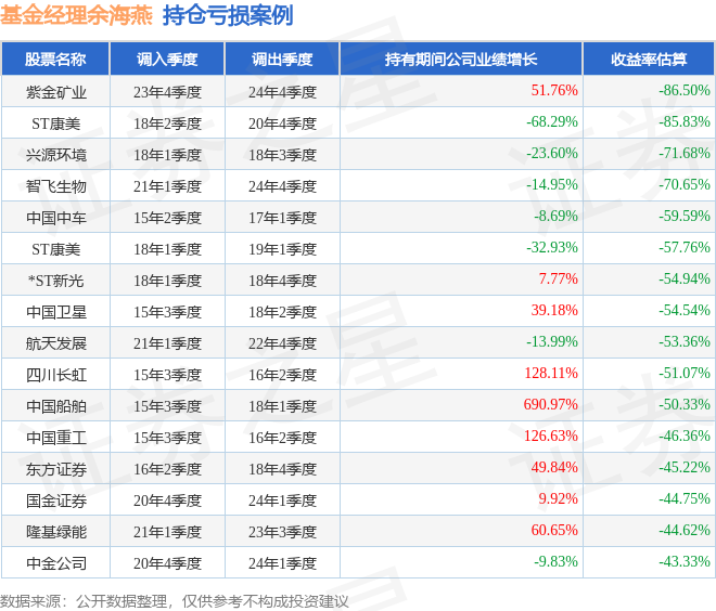 余海燕管理的易方达沪深300发起式ETF基金在23年4季度买入紫金矿业,在持有1年又0个季度后在24年4季度卖出。持有期间的估算收益率为-86.5%,持有期间紫金矿业在2023年到2024年的年报归属净利润增幅达51.76%。