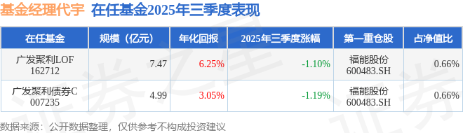 证券之星消息,截止2025年三季度末,基金经理代宇旗下共管理2只基金,本季度表现最佳的为广发聚利LOF(162712),季度净值跌1.1%。