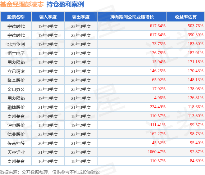 以下为彭凌志所任职基金的部分重仓股调仓案例: