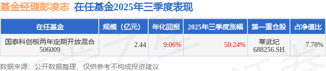 证券之星消息,截止2025年三季度末,基金经理彭凌志管理的国泰科创板两年定期开放混合(506009)季度净值涨50.24%。