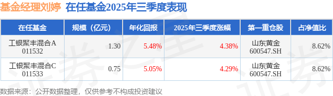 证券之星消息,截止2025年三季度末,基金经理刘婷旗下共管理2只基金,本季度表现最佳的为工银聚丰混合A(011532),季度净值涨4.38%。