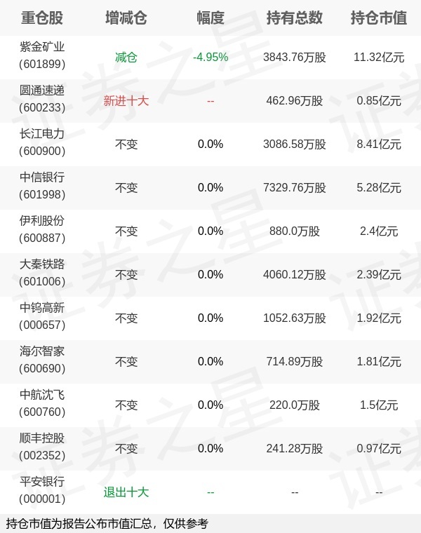证券之星消息,10月28日易方达基金旗下王晓晨管理的易方达增强回报债券型基金公布三季报,近1年净值增长率5.68%。与上一季度相比,该基金前十大重仓股新增圆通速递;其中紫金矿业持仓占比3.17%,为该基金第一大重仓股;平安银行等退出前十大重仓股;详细数据如下: