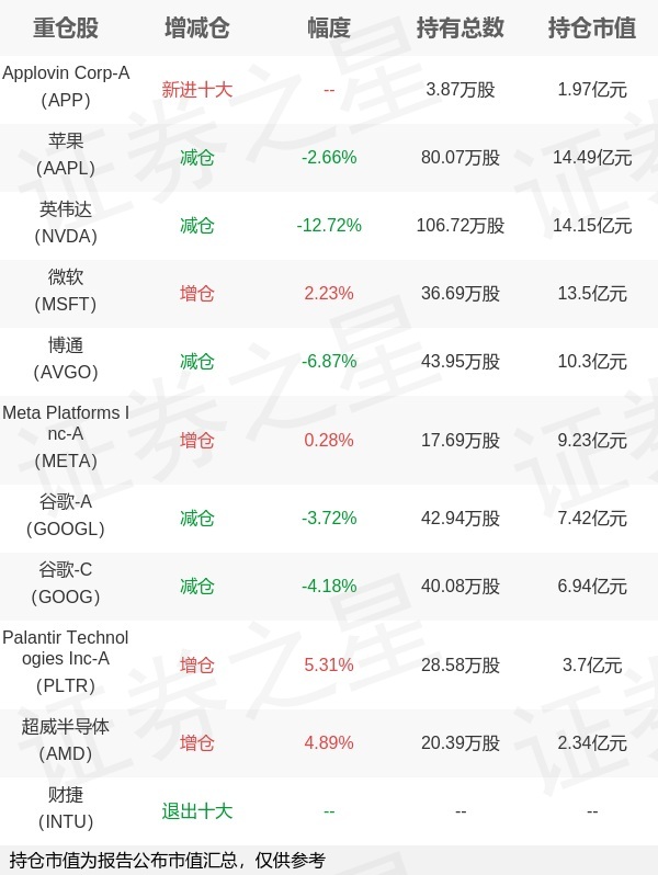 证券之星消息,10月28日景顺长城基金旗下汪洋 张晓南管理的景顺长城纳斯达克科技市值加权交易型开放式指数基金(QDII)公布三季报,近1年净值增长率33.96%。与上一季度相比,该基金前十大重仓股新增Applovin Corp-A;其中苹果持仓占比12.24%,为该基金第一大重仓股;财捷等退出前十大重仓股;详细数据如下: