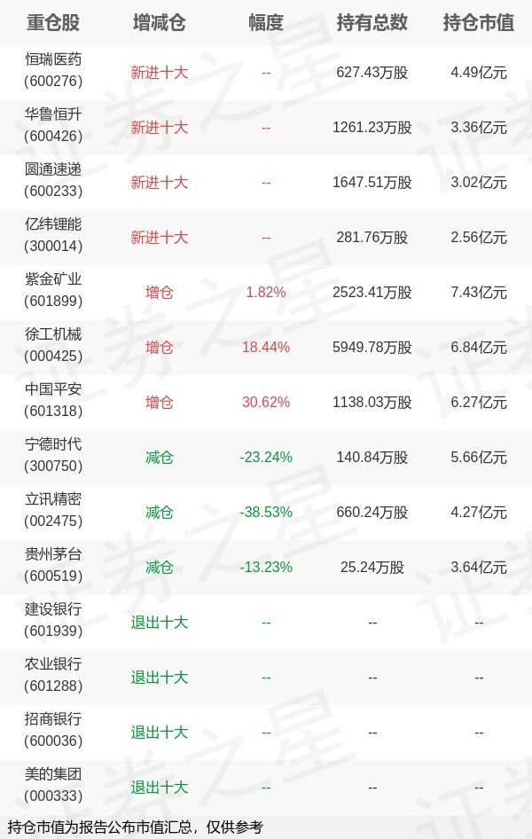 证券之星消息,10月28日汇添富基金旗下劳杰男管理的汇添富价值精选混合型基金公布三季报,近1年净值增长率19.76%。与上一季度相比,该基金前十大重仓股新增恒瑞医药,华鲁恒升,圆通速递,亿纬锂能;并对紫金矿业增仓45.0万股,为该基金第一大重仓股;建设银行,农业银行,招商银行,美的集团等退出前十大重仓股;详细数据如下: