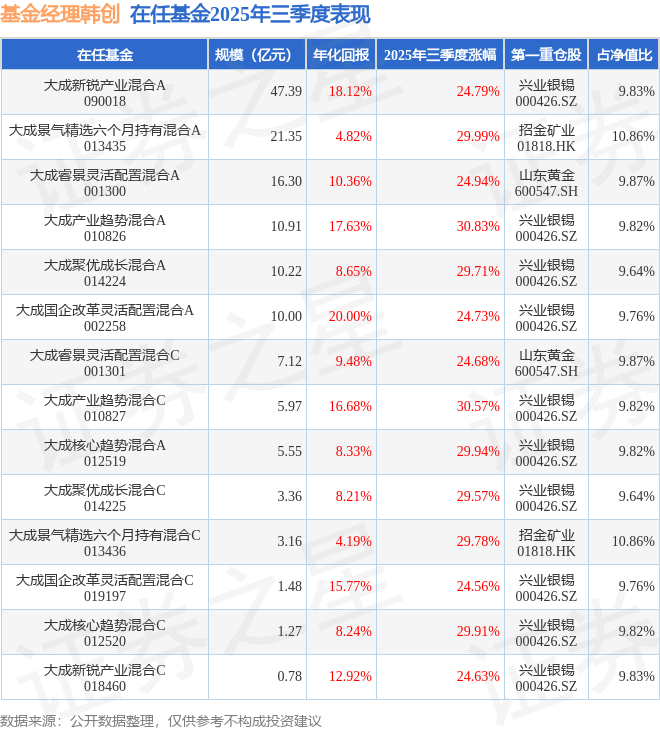 以下为韩创所任职基金的部分重仓股调仓案例: