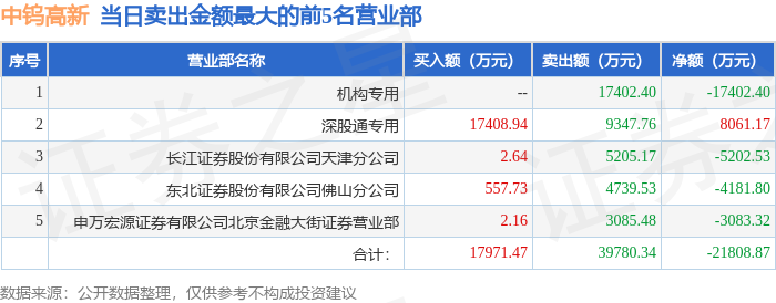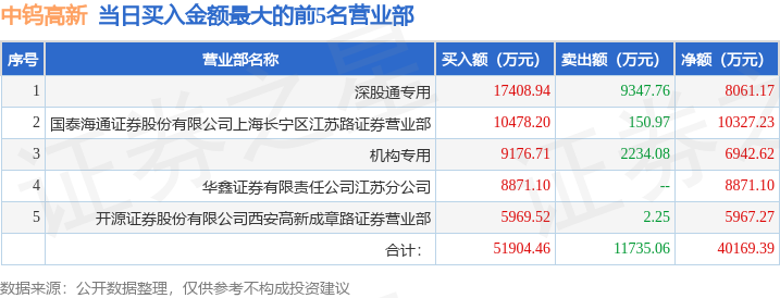 证券之星消息,沪深交易所2025年10月28日公布的交易公开信息显示,中钨高新(000657)因日涨幅偏离值达到7%的前5只证券登上龙虎榜。此次是近5个交易日内第1次上榜。