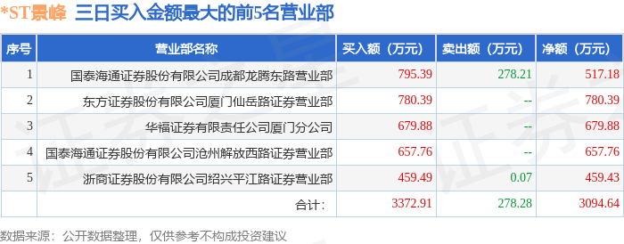 证券之星消息,沪深交易所2025年10月28日公布的交易公开信息显示,*ST景峰(000908)因连续三个交易日内,涨幅偏离值累计达到12%的ST证券、*ST证券和未完成股改证券登上龙虎榜。此次是近5个交易日内第1次上榜。
