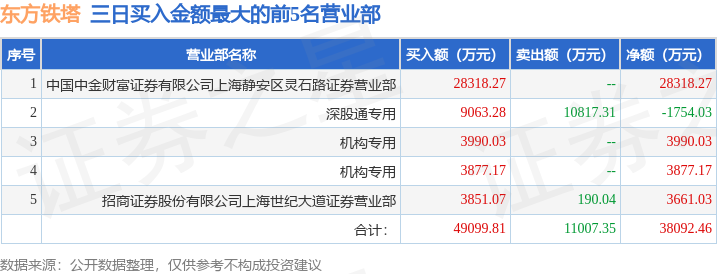 证券之星消息,沪深交易所2025年10月28日公布的交易公开信息显示,东方铁塔(002545)因连续三个交易日内,涨幅偏离值累计达到20%的证券登上龙虎榜。此次是近5个交易日内第1次上榜。