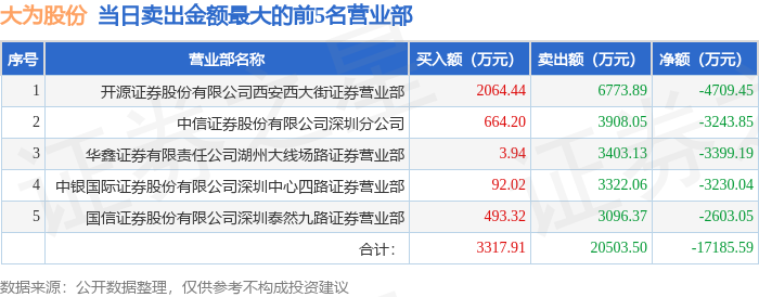 证券之星消息,沪深交易所2025年10月28日公布的交易公开信息显示,大为股份(002213)因日涨幅偏离值达到7%的前5只证券,连续三个交易日内,涨幅偏离值累计达到20%的证券,日换手率达到20%的前5只证券登上龙虎榜。此次是近5个交易日内第1次上榜。