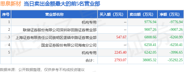 证券之星消息,沪深交易所2025年10月28日公布的交易公开信息显示,思泉新材(301489)因日跌幅达到15%的前5只证券登上龙虎榜。此次是近5个交易日内第1次上榜。