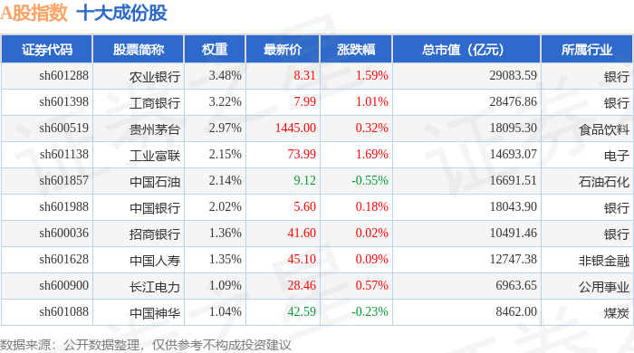A股指数(000002)十大成份股详情如下: