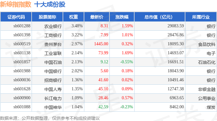 证券之星消息,10月28日,新综指(000017)指数报收于3371.1点,跌0.22%,成交9206.55亿元,换手率1.21%。当日该指数成份股中,上涨的有932家,中船特气以15.71%的涨幅领涨,下跌的有1197家,华建集团以9.98%的跌幅领跌。