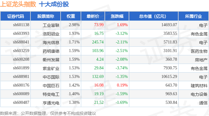 上证龙头(000065)指数十大成份股详情如下: