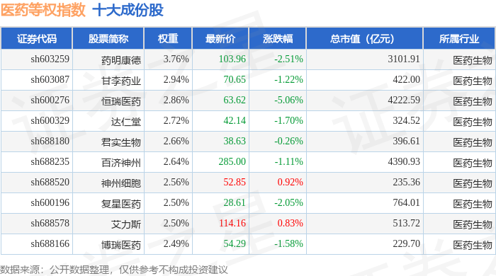 证券之星消息,10月28日,医药等权(000075)指数报收于7361.52点,跌0.5%,成交254.51亿元,换手率1.18%。当日该指数成份股中,上涨的有16家,三生国健以7.48%的涨幅领涨,下跌的有34家,恒瑞医药以5.06%的跌幅领跌。
