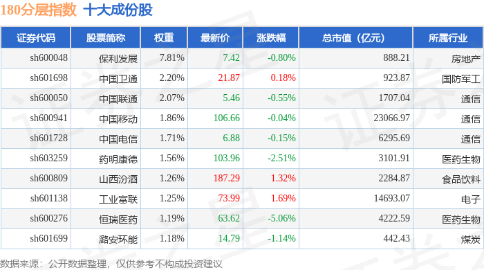 180分层(000093)指数十大成份股详情如下: