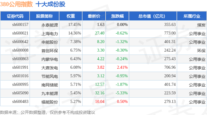 证券之星消息,10月28日,380公用(000113)指数报收于3150.16点,跌0.57%,成交84.46亿元,换手率1.41%。当日该指数成份股中,上涨的有3家,大唐发电以2.41%的涨幅领涨,下跌的有13家,九丰能源以5.33%的跌幅领跌。