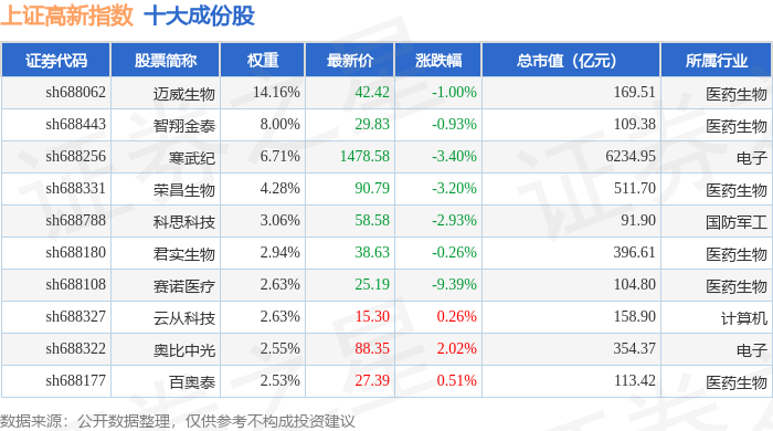 证券之星消息,10月28日,上证高新(000131)指数报收于3752.74点,跌0.74%,成交602.16亿元,换手率2.24%。当日该指数成份股中,上涨的有24家,金山办公以6.38%的涨幅领涨,下跌的有25家,赛诺医疗以9.39%的跌幅领跌。
