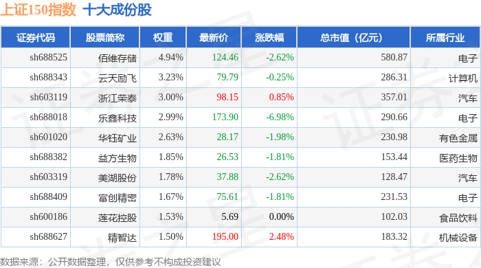 上证150(000133)指数十大成份股详情如下: