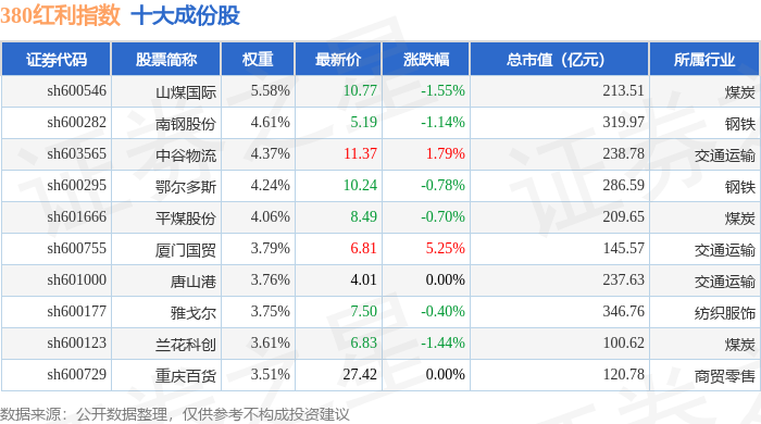 380红利(000150)指数十大成份股详情如下: