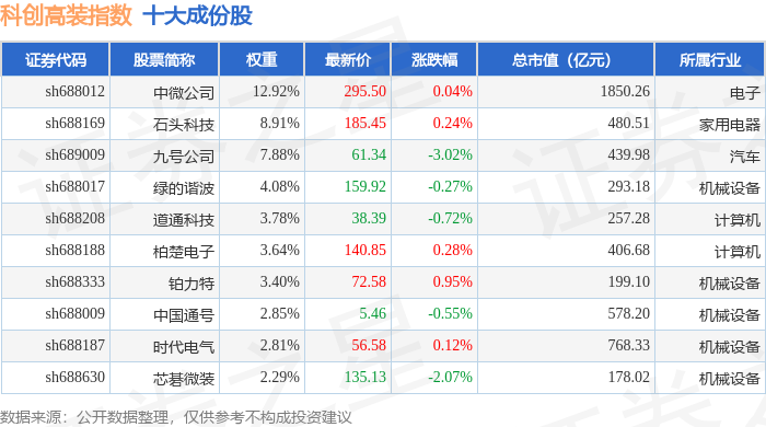 证券之星消息,10月28日,科创高装(000687)指数报收于1288.35点,跌0.36%,成交198.44亿元,换手率1.37%。当日该指数成份股中,上涨的有21家,伟创电气以9.47%的涨幅领涨,下跌的有29家,南网科技以5.88%的跌幅领跌。