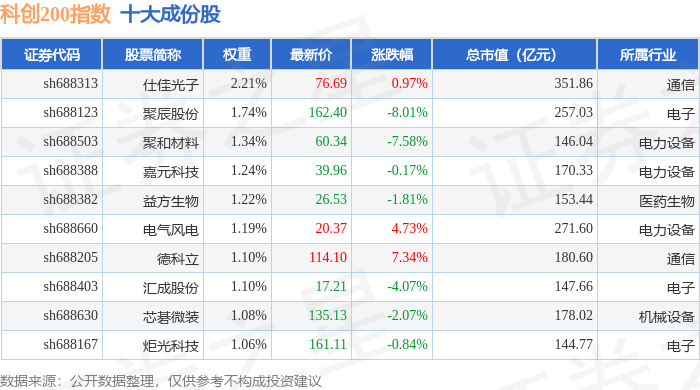 科创200(000699)指数十大成份股详情如下: