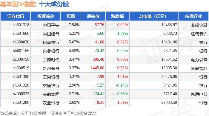 证券之星消息,10月28日,基本面50(000925)指数报收于4697.47点,跌0.42%,成交933.2亿元,换手率0.32%。当日该指数成份股中,上涨的有14家,工业富联以1.69%的涨幅领涨,下跌的有35家,浦发银行以4.47%的跌幅领跌。