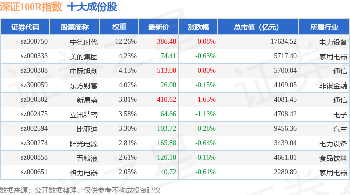 资金流向方面,深证100R(399004)指数成份股当日主力资金净流出合计75.72亿元,游资资金净流入合计26.22亿元,散户资金净流入合计49.5亿元。成份股资金流向详情见下表: