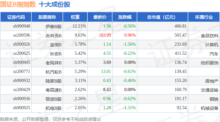 证券之星消息,10月28日,国证B指(399318)指数报收于5332.73点,跌0.2%,成交2.21亿元,换手率0.17%。当日该指数成份股中,上涨的有25家,三毛B股以6.97%的涨幅领涨,下跌的有42家,宁通信B以3.8%的跌幅领跌。