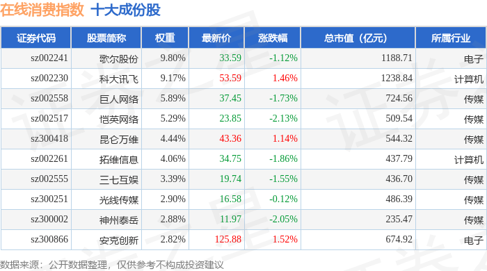 证券之星消息,10月28日,在线消费(399361)指数报收于3932.11点,跌0.24%,成交341.59亿元,换手率2.69%。当日该指数成份股中,上涨的有20家,天下秀以10.09%的涨幅领涨,下跌的有30家,国脉文化以2.86%的跌幅领跌。