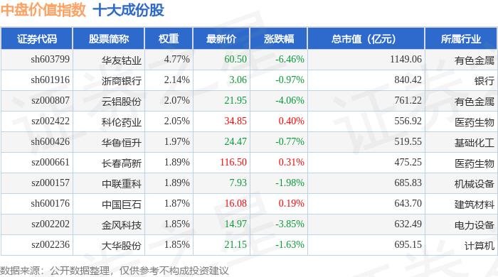 证券之星消息,10月28日,中盘价值(399375)指数报收于5681.02点,跌1.76%,成交619.13亿元,换手率1.34%。当日该指数成份股中,上涨的有24家,大唐发电以2.41%的涨幅领涨,下跌的有74家,铜陵有色以10.07%的跌幅领跌。