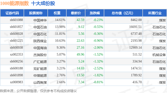 资金流向方面,1000能源(399381)指数成份股当日主力资金净流出合计8.03亿元,游资资金净流入合计2.94亿元,散户资金净流入合计5.09亿元。成份股资金流向详情见下表: