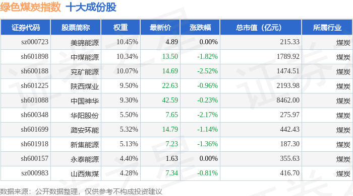 资金流向方面,绿色煤炭(399436)指数成份股当日主力资金净流出合计6.32亿元,游资资金净流入合计1.55亿元,散户资金净流入合计4.77亿元。成份股资金流向详情见下表: