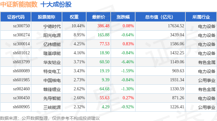 证券之星消息,10月28日,中证新能(399808)指数报收于2730.41点,跌0.72%,成交1224.91亿元,换手率1.68%。当日该指数成份股中,上涨的有21家,福莱特以7.96%的涨幅领涨,下跌的有59家,大金重工以8.51%的跌幅领跌。