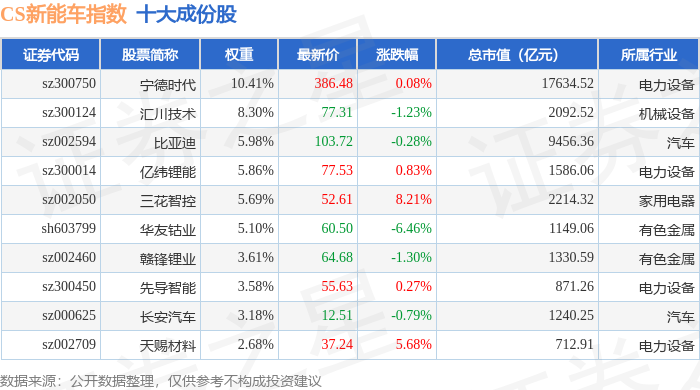 资金流向方面,CS新能车(399976)指数成份股当日主力资金净流出合计9.42亿元,游资资金净流入合计2.39亿元,散户资金净流入合计7.02亿元。成份股资金流向详情见下表: