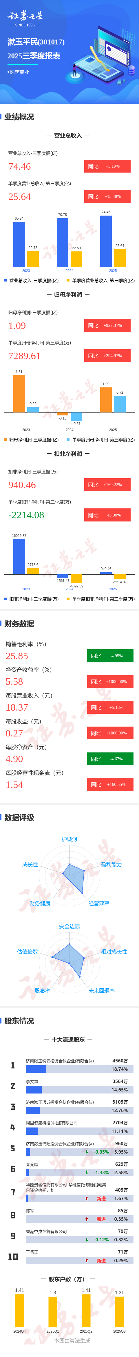 证券之星消息,漱玉平民2025年三季报显示,公司主营收入74.46亿元,同比上升5.19%;归母净利润1.09亿元,同比上升927.37%;扣非净利润940.46万元,同比上升160.23%;其中2025年第三季度,公司单季度主营收入25.64亿元,同比上升13.48%;单季度归母净利润7289.61万元,同比上升294.98%;单季度扣非净利润-2214.08万元,同比上升45.9%;负债率77.74%,投资收益-17.03万元,财务费用1.0亿元,毛利率25.85%。